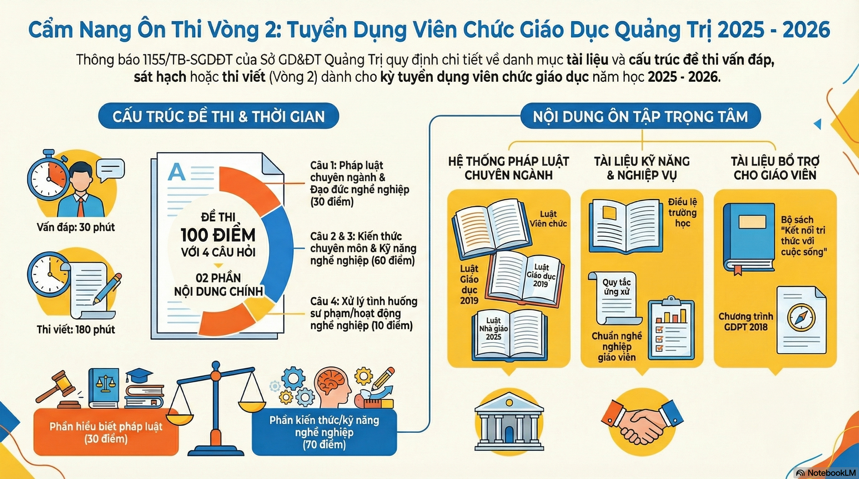 Danh mục tài liệu và cấu trúc đề thi vấn đáp, sát hạch, thi viết vòng 2 tuyển dụng viên chức sự nghiệp giáo dục năm học 2025 - 2026
