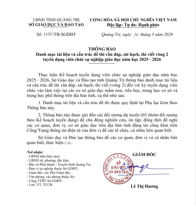 - Thông báo về việc tuyển dụng viên chức sự nghiệp giáo dục năm học 2025 - 2026 (18/03/2026)